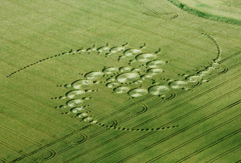 这个麦田圈是撒旦小组受电视公司之邀,在新西兰一片僻静的麦田中制作的(为什么选择新西兰?因为这里地广人稀,他们的行动不易被发现),虽然他们没有在限 时之内完成(超过了预计的5个小时),但是对他们来说也是一个“了不起的成就”了。制作过程在美国电台播放的纪录片《揭发真相:欺骗的秘密》 (Unmarsked:The Secrets Of Deception)中播放,但其中只有15分钟是撒旦小组的画面,节目无非是想让观众相信所有麦田圈都是骗局而已。 视频:撒旦小组制造麦田圈的全过程 据本地居民介绍,电视公司为了拍摄这个节目前后策划了3天,动用了两台40吨的起重机(不知道干嘛用?!),在拍摄时没有采用夜视设备,而是在一万瓦的灯 光照射下拍摄的。影片中还煞有介事的说:“小组成员在漆黑的麦田里,凭着手势或将木板举起而彼此沟通……”,真是很可笑,在漆黑的夜晚,除非人有“夜视 眼”,要不怎么能看到遥远的手势呢,何况要一起做出直径近百米的巨大麦田圈?! 参考资料:《麦田圈密码》 |