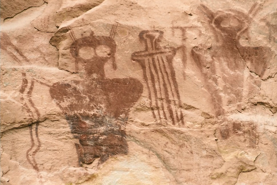 在犹他州美莲草峡谷的砂岩峭壁里发现的壁画