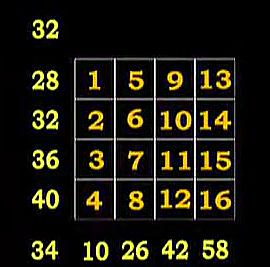 事实上,我的梦给了我一切。这两个梦对小时候的约翰来说就像难懂的梦魔,他于是这样记着到渐渐到了解为止。我的第一份工作是到电力公司做学徒,这成了约翰*瑟尔的转折点。“瑟尔”效应源于“幻方”法则,正是基于这些法则,约翰*瑟尔研制出了效应器于飞行装置,不仅于此,约翰海里游这法则解释宇宙现象的方方面面,从DNA到相对论,从单细胞生物到人类,从交通到建筑构造,“幻方可被用来解释理解任何事物。”我成为店里学徒的第三天,我在一家店里看到一个符号,2的右上角标着一个小2,我问柜员这是什么,他说叫2的平方,我接着问2的平方是什么,他便画了2乘以2的4个方块。我说“我无法理解”,我们为何需要方块,这样他一定代表了什么。当你将数字按顺序放入方格子,每行,每列,对角斜线数字相加的结构都不同。但按一定次序摆放每行,每列,对角斜线数字数字相加结果都一致。