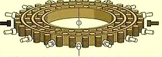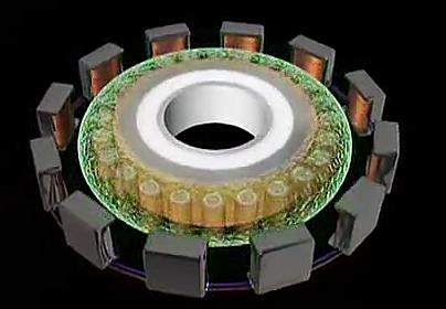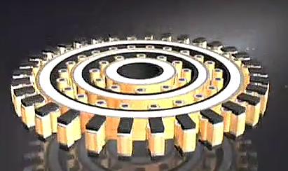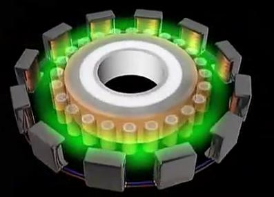 测量表明,产生的电势差为圆盘和磁滚筒的径向,圆盘为正极,磁滚筒为负极(如图1)。原则上,磁滚筒和圆盘发生电磁偶尔后,不需要什么来保持回转电池的运转。然而,作为一个扭矩发生装置,它的管道和外壳必需适合于转移产生的能量。而且,在应用上,它是内置在主结构里的,磁滚筒应该比圆盘要短,以防止磁滚筒被卡住。装置运行时,为防止圆盘和磁滚筒间的机械和流电接触,电磁相互作用和离心力使它们之间产生间隙,从而将摩擦几乎降低为零。实验表明,输出的能量随着磁滚筒数量的增加而增加;为了保证系统稳定运行,圆盘直径Dp与磁滚筒直径Dr之比应为一个大于等于12的正整数: