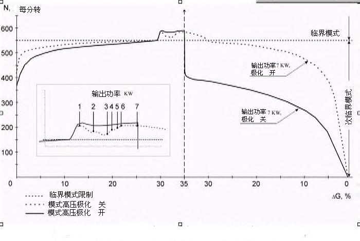 磁重力转换器建在一间实验室房间里的三个地水准平面的混凝土基座上。 实验室房间天花板高3米。除了现有的钢筋混凝土天花板,最接近磁系统的是发电机和电动机,它有着数十公斤的铁,因而有着使场的方向变形的潜在可能。装置由电动机启动,并加速转子的旋转。旋转流畅地增加到电机电路包含的电流表开始显示零或更低值的电能消耗,或甚至有返向电流出现。在每分钟550转时测到有反向电流存在。磁移传感器14在每分钟200转时开始检测到整个装置的重量变化。随即通过电磁套筒完全断开电动机的连接,而普通电动发电机通过同一个套筒又被连接到装置的基准轴上。转换器转子继续向着每分钟550转的临界模式自我加速,装置的重量迅速改变。除了改变转速重量取决于功率外,移入有源负载(使用了一套10个普通的1千瓦的电热水器)并还施加极化电压。在最大输出功率等于6-7千瓦时,整个平台重量G(总重为350公斤)发生改变,达到初始重量的35%?一个超过7千瓦的负载导致旋转逐渐放慢,并退出自生产模式,最终转子停转。通过对位于距离滚筒外表面10mm的单元式环电极施加高电压,可以控制平台重量。在高压20千伏(电极负极)以下,在基础发电机电路中采入功率的增加超过6千瓦不对重量G产生影响,尽管每分钟转速不低于400转。可观察到这种效应的紧缩以及G上的滞后效应(一种剩余感应)。4给出的实验图,说明了转换器的操作模式。