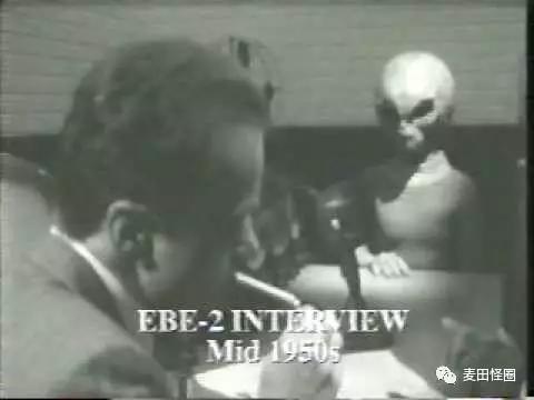 有一盘录像带详细记录下二号外星生物(EBE-2)接受聆讯的情况。作为交流使者,它从1964年一1984年一直呆在地球上。录像时我间是1983年3月5日,地点在洛斯阿拉莫斯国家实验室的一间地下室。室内只有一张桌子、几张椅子,桌子上放着一支麦克风和录音设备,还有一架相机。EBE-2是一个身高约144厘米的非人类长相的外星生物,一身米色紧身衣打扮,没有头发。五位空军方面的人士参与了这次会面。他们主要是问了一些有关EBE-2主星球的问题,包括温度、气候和天气。EBE-2用一种听起来像机器引发的标准英语做了回答,无法判断声音是从它前面桌上仪器发出的,还是从它内部装置发出的。
