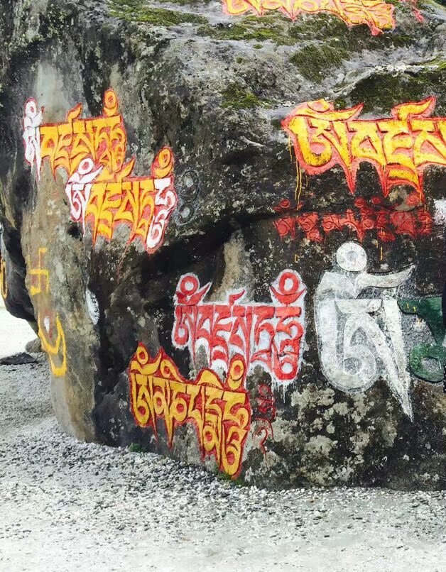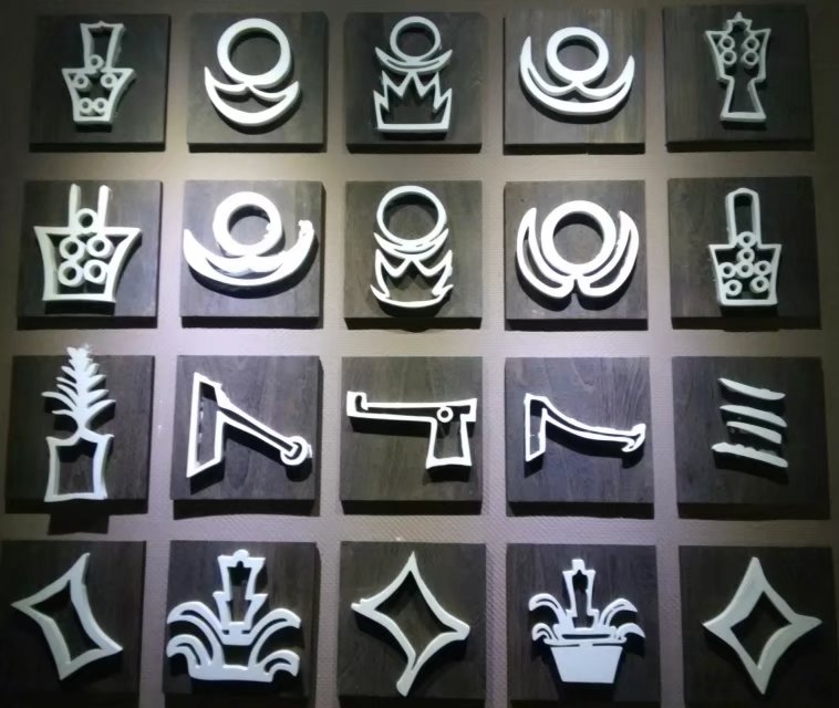 图一 (图二)符号编号顺序依次从左至右,自上而下 图三 图四 大日如来造像 大日如来木雕 拉萨景区岩石上镌刻的卐字与白色太阳、黄色月亮堆相组合  金币上的藏戏面具“日月堆相”图腾  明代梁庄王随葬西藏密教法器上的“日月堆相”