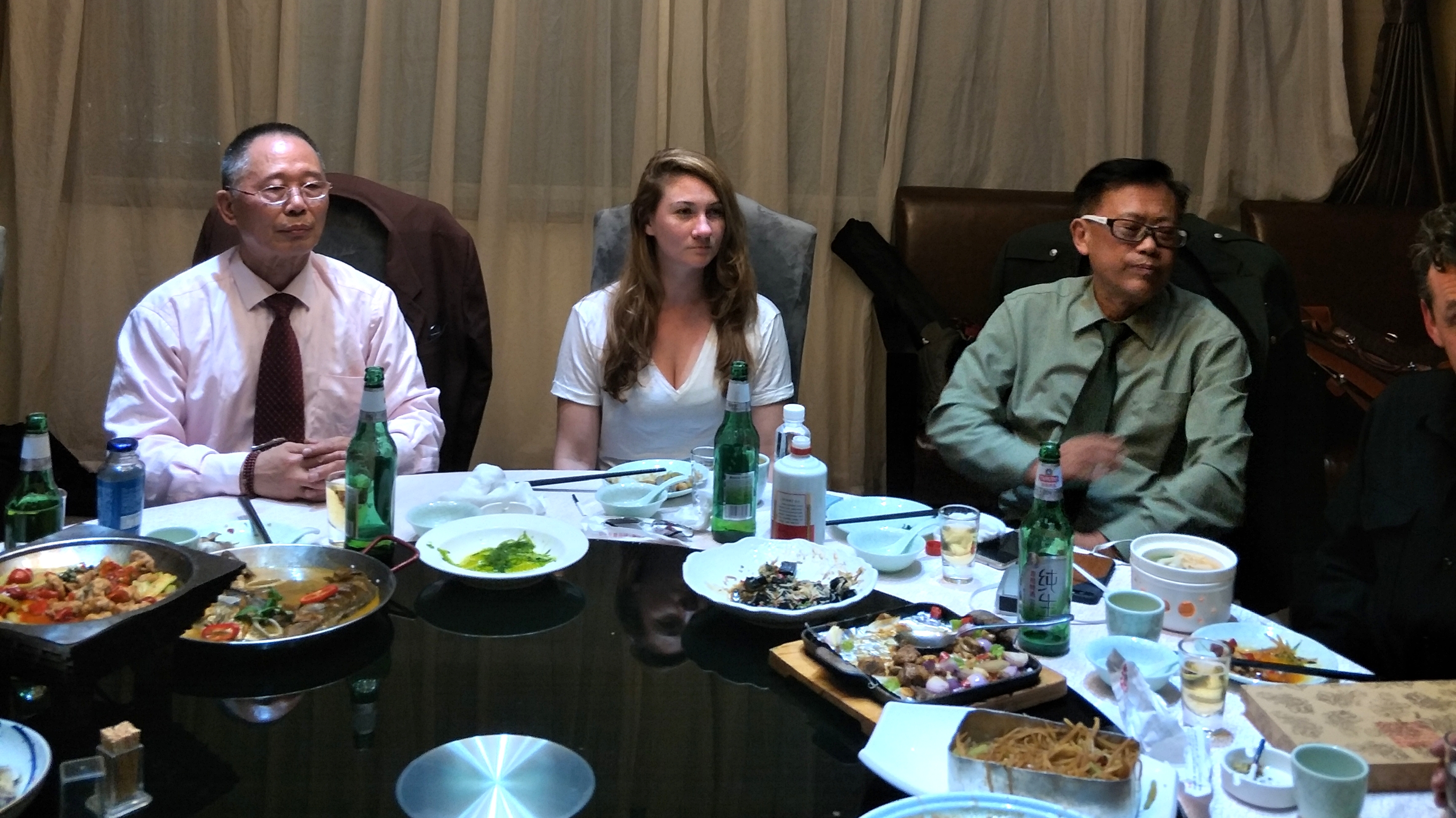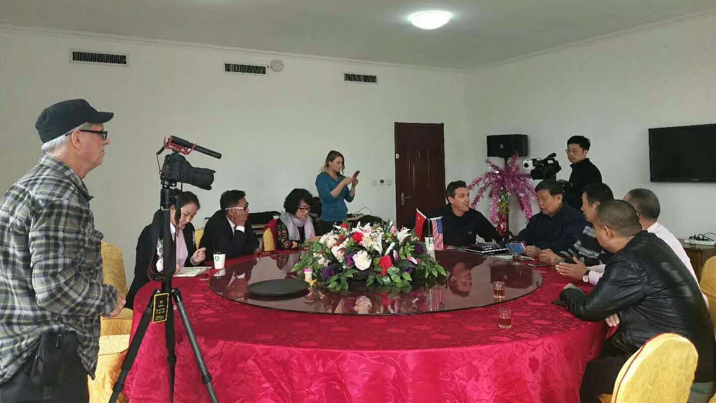 4月25日下午四点,金帆会长与詹姆斯一行5人到达山西省吕梁市。世界华人UFO联合会执委会副会长、山西UFO分会会长苏丛柏专程从太原到吕梁机场迎接。晚上山西UFO分会常委、世界华人UFO联合会北武当山UFO观测站站长侯克捷,在吕梁国际宾馆设宴招待。各种地方特色菜肴令客人大饱眼福、交口称赞。摄影师大卫把每一盘菜肴都拍摄下来,留作纪念。26日上午,詹姆斯一行游览了道教圣地------北武当山。北武当山是侯克捷呕心沥血、无私奉献、精心建设保护的成果。侯克捷当年是吕梁旅游开发办公室主任,是北武当山建设的功臣,得到当地政府领导的支持,受到当地老百姓的拥戴。侯克捷给大家介绍了他的“太极门”专利,与他发现并规划的七星之路,介绍了设在北武当山顶的UFO观测站。詹姆斯一行饶有兴趣拾阶而上,只恨山高路陡,时间有限,只好以无人机航拍记录。下午在侯克捷的带领下,赶赴《8.20UFO》的目击现场——侯台镇。詹姆斯邀请侯克捷和侯立海二位目击证人对当时目击情况进行了采访拍摄,并与当地村民进行了友好互动,为保证拍摄效果,著名摄影师大卫不辞劳苦,选择合适光线、变换各种角度,精心拍摄,给大家留下深刻印象。侯克捷还给詹姆斯观看了专门制作的《8.20UFO》动画,苏会长给客人提供了 2011年《8.20 UFO》相关文字、视频资料。大家不辞劳苦、奔波于山间小路,一直到晚上九点才回到宾馆。夜间詹姆斯执意答谢宴请,他衷心感谢金帆会长与中方朋友的热情接待,密切配合。赠送苏丛柏副会长他拍摄的《不可思议》(UFO TV),该片介绍了世界多地的UFO目击案例。詹姆斯表示中国是文明古国,历史悠久。几天来悉知从古到今,中国有大量珍贵的UFO案例,非常精彩引人,他百分之百的愿意和联合会合作,全力以赴拍摄出高水平、高质量的中国UFO影片,推向好莱坞、推向全世界。