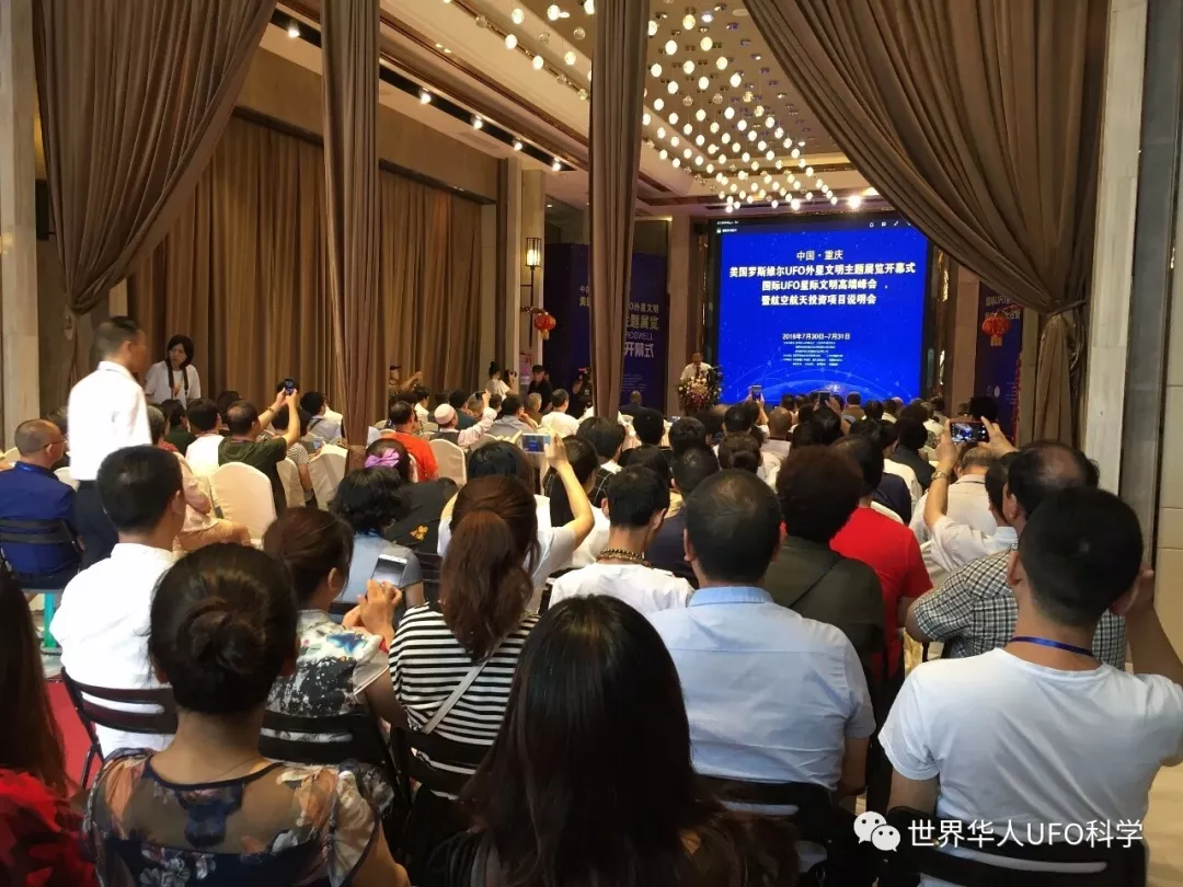 重庆市西永区中欧智慧光都展览馆外景 《飞碟报》讯:2018年7月30日,历经四年筹备、万众期待的《美国罗斯维尔UFO外星文明主题展览》在中国重庆的中欧智慧光都震撼开幕。 在世界各地众多UFO事件中,1947年的美国罗斯维尔飞碟事件是其中影响力巨大,悬念迭生的一次重要事件。本次《美国罗斯维尔UFO外星文明主题展览》由世界华人UFO联合会、大连市UFO研究学会、重庆健科佳全息健康产业有限公司与美国罗斯维尔UFO国际展览馆共同举办,为期10个月(2018年7月30日至2019年5月30日),是继美国本土的罗斯维尔UFO国际展览馆之外唯一一个以美国罗斯维尔飞碟坠毁事件为主题的展览,引起了社会各界的广泛关注。 各国贵宾步入会议现场 出席本次开幕式的嘉宾有:格林纳达共和国驻华大使丹尼斯·安托万先生、国际空间站联盟号宇航员、重庆市政府、四川省政府的相关领导、什邡市副市长、美国罗斯维尔UFO展览馆主要创办人唐·施密特先生、美国好莱坞著名电影导演詹姆斯先生、世界华人UFO联合会理事长孙式立先生、世界华人UFO联合会执行会长金帆先生,好莱坞金牌摄影师大卫先生,中华文化促进会文博艺术委员会副主任赵德远,重庆健科佳全息健康产业有限公司董事长兼世界华人UFO联合会理事黄毅先生、来自美国、俄罗斯、意大利等国家UFO研究领域的代表,以及航空航天、天文、地质、UFO等领域的著名科学家、专家、学者,网易、搜狐、百度、腾讯网、凤凰网、今日头条、重庆日报、重庆热报等几十家媒体代表汇聚一堂共同见证这一伟大的时刻。