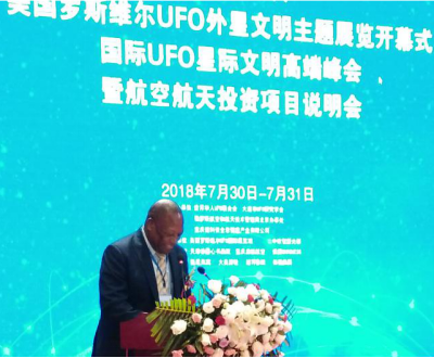 开幕式火爆现场 世界华人UFO联合会执行会长金帆先生致开幕辞:“欢迎来自世界各地的嘉宾朋友们。那么,UFO真的存在么?真的有外星人么?千百年来,这些问题一直在每个人心底萦绕,本次罗斯维尔UFO外星文明主题展览将用事实来回答大家的困惑。” 世界华人UFO联合会执行委员会会长金帆先生讲话 格林纳达驻华大使丹尼斯·安托万先生致辞:“首先对本次展览的创办者表示感谢,我坚信UFO是客观存在的。1978年格林纳达前总理就致力于UFO的探索,并引起国际社会的关注,联合国在1978年通过了格林纳达政府提出的世界各国共同探索UFO的决议,中国政府对该决议投了赞成票。希望大家持续开发我们的大脑与环境,积极探知更广阔的未知世界。” 格林纳达驻华大使戈德先生讲话 重庆健科佳全息健康产业有限公司董事长、世界华人UFO联合会理事黄毅先生致辞:“对地外文明的探索,关系到国家民族的命运,甚至人类的未来。作为展览的承办方和项目方,我们希望通过举办《美国罗斯维尔UFO外星文明主题展览》,促进人们对未知科学领域的探索,激发广大青少年以“科技兴国”、“科技强国”、“科技报国”的意识和热情,让展览成为中国广大民众尤其是青少年普及前沿科学知识的生动课堂”。 健科佳全息健康产业有限公司董事长黄毅先生讲话 美国罗斯维尔UFO国际展览馆创办人唐·斯密特先生致辞:“对美国罗斯维尔UFO事件,我最初是怀疑的,后来通过大量的实物及证人证言逐步解疑,美国罗斯维尔UFO事件99.99%是真实存在的,我创建美国罗斯维尔UFO展览,希望越来越多的中国人来罗斯维尔展览馆了解真相。在浩瀚的宇宙中,我们并不孤独。” 美国罗斯维尔UFO国际展览馆创始人史密特先生讲话 与会嘉宾代表共同按下了开幕式的启动光球 参会嘉宾代表共同按下了开幕式的启动球,见证了这一历史时刻的到来。 随后,参会嘉宾共同参观了《美国罗斯维尔UFO外星文明主题展》的展览现场。本展览将罗斯维尔事件中的真实对象、外星人、飞碟的影像、实物证据及目击证人、证言呈现给民众,并以情景再现等形式让参观者更好的感受事件的发生过程,彻底揭露1947年发生在美国罗斯维尔地区飞碟坠毁事件的真相。本次展览中还展出了在中国发生的著名UFO事件,现场更有神秘的麦田圈、无价可寻的飞碟残片等,令人无限遐想。 罗斯维尔UFO外星人展馆馆长史密特先生亲自讲解 对地外文明的探索,事关国家民族甚至人类命运及地球未来,当今世界发达国家竞相投入巨资力争取得领先的地位,正在复兴的中华民族岂能落后于他人。本次展览正是为了响应党中央关于科技创新的号召,推动我国前沿科学技术的发展,促进人们对未知科学领域的探索热情,激发广大青少年以“科技兴国”、“科技强国”、“科技报国”的意识,同时也必将为重庆市旅游产业增添又一新的亮点。 展览会及外星文明高峰论坛吸引来众多嘉宾 7月29日晚,重庆健科佳全息健康产业有限公司董事长黄毅为国内外嘉宾举办了有一百二十人参加的大型欢迎晚宴,气氛欢快而热烈。 (文/殷杰 静舟 柏子 图/王维刚 静舟 金帆) 与会嘉宾在展馆外合影