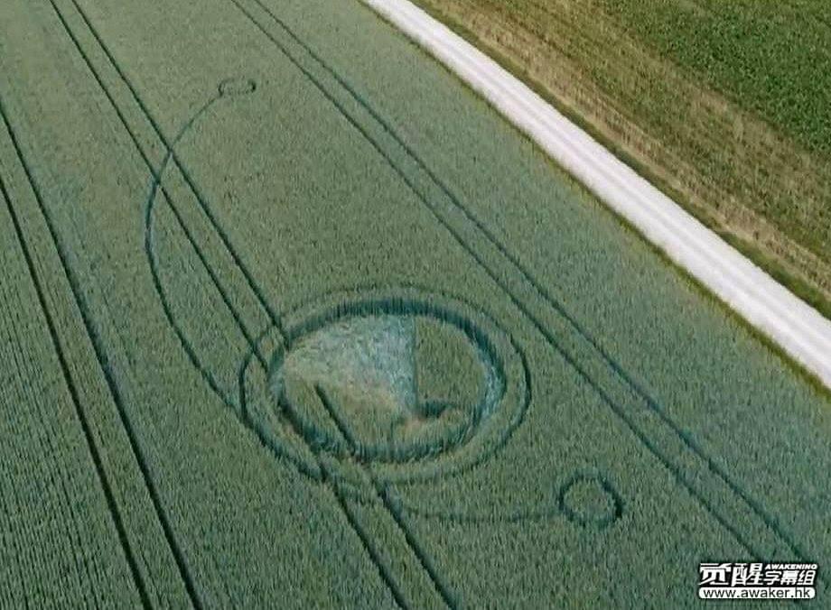 星期日我开着拖拉机从这里路过,当时什么都没有,这个麦田圈必需在周日晚和周一的凌晨出现,在周一早上我发现它时,以为是大风造成的,直到我的女婿用无人机航拍了画面才看到这个惊人的作品。