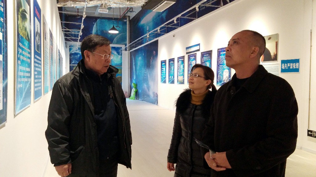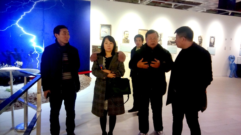金帆会长(右2)、黄毅董事长(左1)陪同上海来宾参观考察展览馆